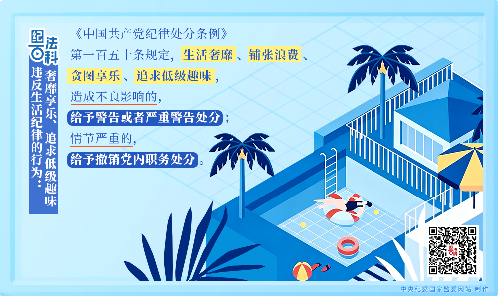 《中国共产党纪律处分条例》第一百五十条规定,生活奢靡、铺张浪费、贪图享乐、追求低级趣味,造成不良影响的,给予警告或者严重警告处分;情节严重的,给予撤销党内职务处分。