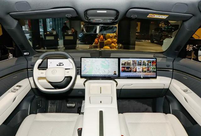 外观方面,与众08采用别具一格的设计语言。狭长上扬的日间行车灯与中央可发光的大众品牌LOGO相融合,封闭式前格栅下方配备倒梯形进气口,增添运动气息。车身侧面采用双腰线设计,配备隐藏式车门把手及两种轮圈造型,时尚感突出。车尾则采用狭长平直的尾灯组,整体风格相对内敛。